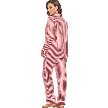 Serenedelicacy Women's Satin Pajama Set Long Sleeve Button Down Sleepwear 2-Piece Striped Silky Pj Set (Small, Red, Striped)