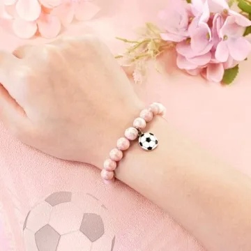 Sereney Soccer Bracelet Gifts for Girls, Soccer Girl Jewelry Stuff Accessories Pink Adjustable Bracelet for Teenage Women, Birthday Game Day Gifts Baskets for Daughter Granddaughter Sport Fans