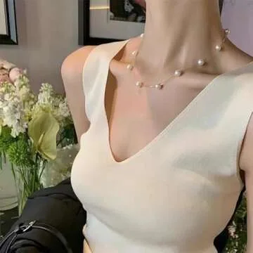 Sereney Sterling Silver Pearl Necklaces for Women, Dainty Birthday Necklaces Prom Jewelry as Real Pearl Choker Necklace, Freshwater Pearl Jewelry as Sterling Silver Choker Necklace for Bridal Jewelry