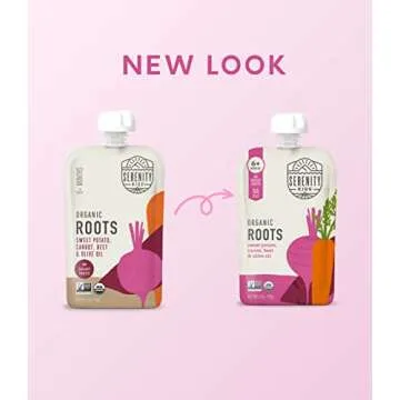 Show more Introducing the Serenity Kids Organic Roots Baby Puree - a thoughtful blend of wholesome ingredients, specifically designed for your little one’s developing palate. Each pack contains 12 convenient pouches filled with deliciously pure, organic concoctions of sweet potato, carrot, and beet, enhanced with healthy fats from olive oil. This delightful puree is perfected for babies aged 6 months and up, allowing parents to provide nutritious meals on-the-go.