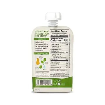 Serenity Kids 6+ Months Veggie Puree Baby Food Pouches - USDA Organic - No Sugary Fruits or Added Sugar - Allergen Free - 3.5 Ounce BPA-Free Pouch - 12 Count Carrot, Spinach & Basil Baby Puree