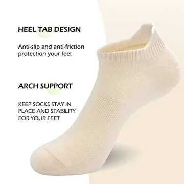 Show moreIntroducing the SERISIMPLE Women Ultra Thin Socks – the ultimate solution for those seeking comfort without compromise! Made from luxurious viscose bamboo, these low-cut no-show socks are designed to keep your feet feeling fresh, dry, and comfortable throughout the day. With a variety of features including breathable mesh, arch support, and an anti-slip heel, these socks are destined to become your go-to choice. Whether you're running errands or relaxing at home, these 5 pairs of stylish ankle socks will perfectly blend into your footwear while providing the support and breathability you need.