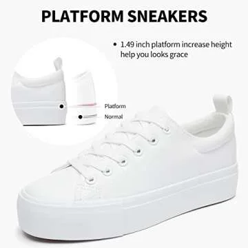 SERNIAL Womens White Platform Sneakers PU Leather Platform Shoes Walking Shoes for Women(White,US8)