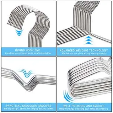 Show moreIntroducing the Seropy 50 Pack Clothes Hangers, crafted to revolutionize your wardrobe experience! Made from premium stainless steel, these hangers are the ultimate choice for those seeking a blend of durability, style, and functionality. Unlike flimsy plastic or wooden hangers, the Seropy hangers are designed to withstand the test of time, ensuring your clothes stay safe and secure without succumbing to rust or deformation. Whether you're organizing your closet, coordinating outfits, or simply looking for an elegant way to hang your garments, these hangers shine in every aspect.