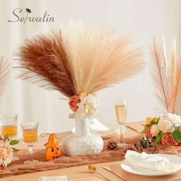 Serwalin 60pcs Orange Pampas Grass Decor, 17.7Inch Fall Artificial Pampas Grass, Faux Pampas Flower Arrangement for Home Decor Wedding Party Centerpieces Decoration Vase Filler