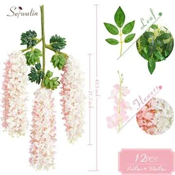 Elevate your decor with the Serwalin Wisteria Hanging Flowers, a stunning set of 12 artificial blooms that measure an impressive 3.75 feet in length. These exquisite flowers are designed to mimic the beauty of natural wisteria, offering a lifelike appearance that will bring elegance to any room. Ideal for both home and event decorations, each flower is crafted from high-quality materials ensuring durability and vivid colors that won't fade. Whether dangling from ceilings...