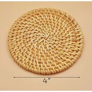 Elegant Set of 6 Handwoven Rattan Coasters - Ideal for Home & Kitchen