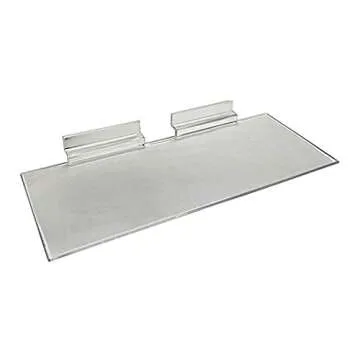 Show moreIntroducing our Set of 10 Clear Slatwall Shelves, meticulously designed for retail display purposes. Each shelf measures 10 inches wide and 4 inches deep, crafted from durable 1/8" thick clear styrene acrylic plastic. Perfect for showcasing a range of items, from shoes to collectibles, these shelves provide an efficient way to maximize your slatwall space and keep your products beautifully organized. The sleek, transparent design seamlessly blends into any environment, allowing your merchandise to take center stage while maintaining an elegant aesthetic.