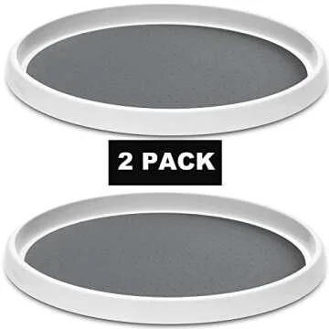 Set of 2, 12 Inch Non-Skid Lazy Susan Organizer, Pantry Lazy Susan Turntable for Cabinet, Kitchen Cabinet Organizer, Pantry Organization and Storage -White/Gray