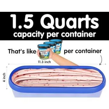 Show moreIntroducing the ultimate solution for ice cream enthusiasts: the SUMO Ice Cream Storage Containers! These durable and insulated containers are expertly crafted to meet all the needs of homemade ice cream lovers, providing a safe and convenient space for their delicious creations. With each container boasting a generous capacity of 1.5 quarts, they hold the equivalent of three pint-sized tubs, ensuring you have ample room for every delightful flavor you whip up. Say goodbye to freezer burn and hello to perfectly stored ice cream! The specially designed lids create an airtight seal, keeping your ice cream in flawless condition, so every scoop tastes just as good as the first.