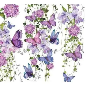 Show more Introducing a delightful set of napkins adorned with whimsical lavender flowers and charming butterflies, designed to elevate any occasion or craft project. These napkins are not only visually appealing but also made from high-quality materials that ensure durability and a soft touch. Whether you're hosting a summer picnic, an elegant dinner party, or simply enjoying an afternoon tea, these napkins add a touch of sophistication and nature's beauty to your table setting. Each napkin comes in a standard size, making them perfect for both casual and formal events.