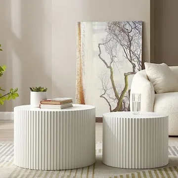 Show moreIntroducing the **Set of 2 Large Handcrafted Round Wooden Coffee Tables**, the perfect fusion of modern luxury and functional design that elevates your living space. Expertly crafted with attention to detail, these tables feature a stunning white finish that seamlessly integrates into any decor style. Designed as a versatile nesting table set, the larger coffee table (Φ 23.62 x H 15.75 inches) allows you to host guests comfortably while the smaller side table (Ø 18.9 x H 13.78 inches) tucks neatly away underneath when not in use. This space-saving design is ideal for those who appreciate both practicality and elegance in their furniture choices.