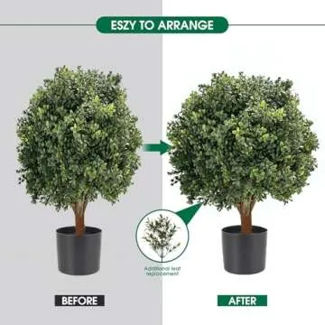 Set of 2 -Pre-Potted Artificial Potted Shrubs UV Resistant,24" Artificial Boxwood Topiary Ball Tree,for Indoor and Outdoor Home Garden