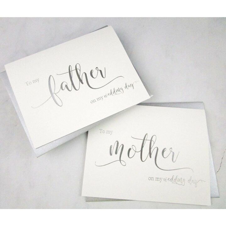 Set of 2 Silver Foil Wedding Day Cards with Envelopes