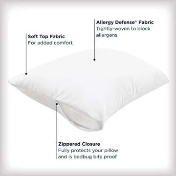 Show more Introducing the Set of 2 Standard/Queen AllerEase Pillow Protectors, your ultimate solution for achieving a cleaner, allergy-free sleep experience! Crafted for those who seek not just protection but also comfort, these premium pillow protectors bring you the best of both worlds. Utilizing moisture-wicking materials ensures that your pillows stay dry throughout the night, while the advanced allergy protection actively inhibits allergens and unhealthy particles, promoting a healthier sleep environment. Designed to fit perfectly on standard and queen-sized pillows, these protectors guarantee a snug fit, so you can enjoy a night of uninterrupted rest with confidence.