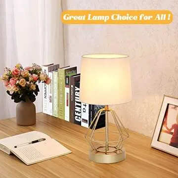 Set of 2 Touch Control Table Lamp White&Gold, 3-Way Dimmable Bedside Lamps with USB& Type C Ports, Fabric Modern Small Nightstand Lamps for Bedroom Living Room Office Desk Hallow Base (Gold)