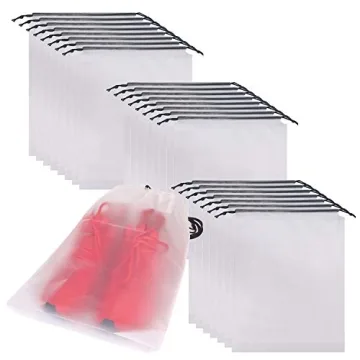 Show more Introducing the Set of 24 Portable Translucent Shoe Bags for Travel – a must-have accessory for anyone serious about organizing their footwear and essential items! Designed to cater to both men and women, these large clear shoe pouches (each measuring 12.6 inches x 16.5 inches) are perfect for storing shoes up to size 12 for men, making them incredibly versatile. Whether you need to store sneakers, dress shoes, slippers, hiking boots, or even handbags, these bags ensure your items remain dust-free, organized, and easily accessible. The durable construction coupled with a stylish translucent design allows you to see what’s inside, so you never have to rummage through your luggage again!