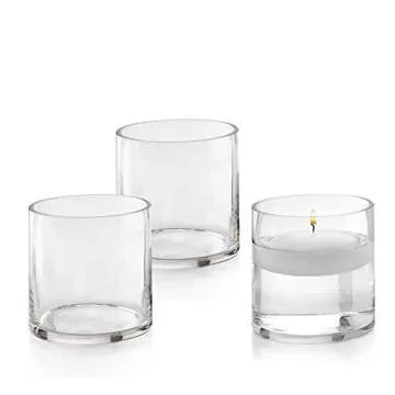 Set of 3 Glass Cylinder Vases 4 Inch Tall - Multi-use: Pillar Candle, Floating Candles Holders or Flower Vase – Perfect as a Wedding Centerpieces.