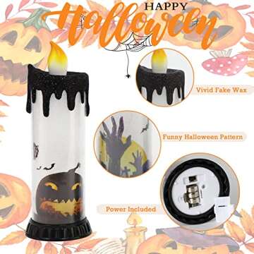 Set of 3 Halloween Snow Globe Candles, Auto LED Flickering Halloween Spinning Water Glittering Tornado Flameless Candles Lighted Lamp, Battery Operated Table Centerpiece for Halloween Party Decor