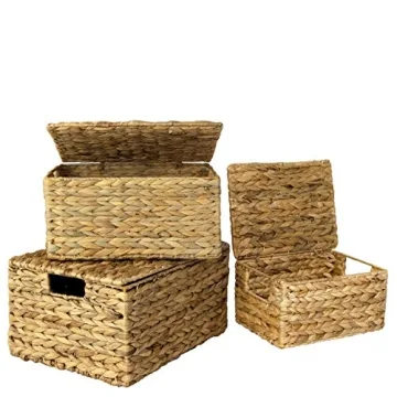 Elegant Handcrafted Set of 3 Nesting Storage Baskets with Lids | Eco-Friendly Organization Solution