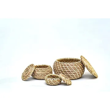 Elegant Set of 3 Round Handmade Seagrass Woven Baskets with Lids for Storage and Decor