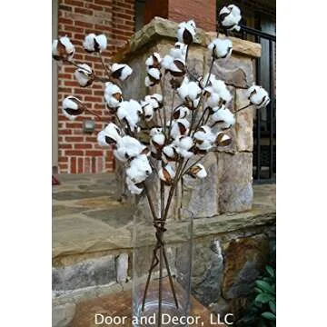 Set of 3 Rustic Cotton Stems with 15-18 Cotton Bolls per Stem and 30-31 inches Tall Farmhouse Style