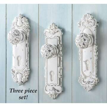 Chic Set of 3 Hand Painted Antique White Hooks for Decor