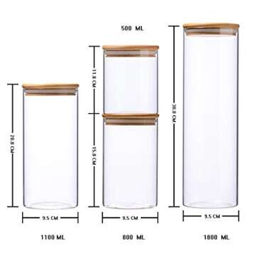 Set of 4 Large Spaghetti Jars Glass Cylinder Airtight Food Storage Container Canister Jar with Bamboo Lid & Silicone Sealing Ring for Pasta, Candy, Cookie, Rice, Sugar, Flour, Nuts