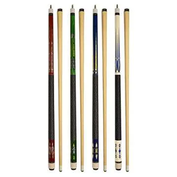 Show moreUpgrade your gaming experience with the Set of 4 Pool Cues New 58" Billiard House Bar Pool Cue Sticks (SET15~18). These cues are expertly designed for both casual players and home entertainment, providing a reliable and enjoyable gameplay experience. Crafted with a hardwood shaft and featuring a stunning overlay decal butt, each cue measures a standard 58 inches in length and features high-quality 13mm leather tips for precise control and optimal spin. Whether you're playing a friendly game with friends or hosting casual gatherings, this set will elevate your billiards experience with outstanding performance and appealing aesthetics.