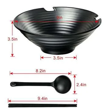 Set of 4 Ramen Bowl Set, 37 oz Melamine Large Japanese Style Noodle Soup Bowls Set with Spoons and Chopsticks for Ramen, Pho, Noodles, Asian Dishes Black