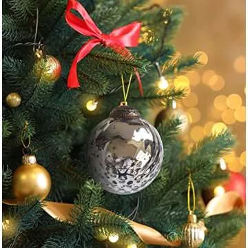 Set of 4 Silver Mercury Glass Ornaments (3.15" Antique Embossed Ball) Perfect for Christmas Tree, Hanging Holiday Decoration, Gifts & Home Decor