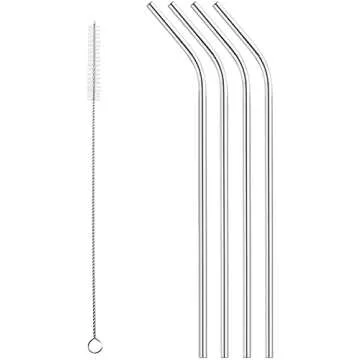 Set of 4 Stainless Steel Drinking Straws, Cleaning Brush Included