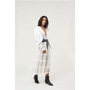 Seta Apparel Women's Crown Tulle Midi Skirt, White, Medium