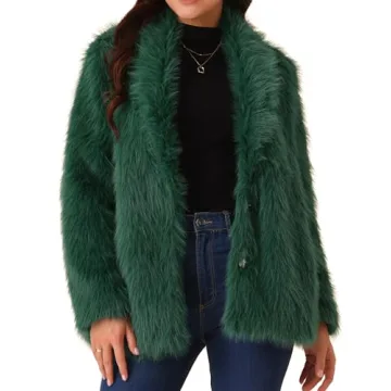 Seta T Women's Faux Fur Coat Long Sleeve Pockets Lapel Warm Winter Overcoat Fluffy Jackets Medium Dark Green