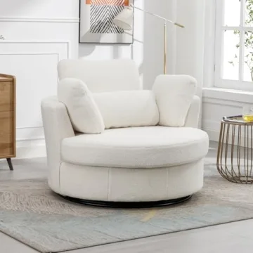Show moreIntroducing the Setawix 42.2" W Swivel Accent Barrel Chair, where modern design meets unrivaled comfort. This oversized swivel chair is not only a stylish centerpiece but also a versatile addition to your home. Crafted from premium chenille fabric that feels soft against the skin, it enhances any space, be it a contemporary living room, a chic office, or a serene bedroom. The 360-degree swivel feature allows for seamless movement, making it perfect for relaxation while enjoying a good book or entertaining guests. With three plush movable cushions, this chair offers personalized support for your back and arms, ensuring a cloud-like comfort every time you sink into it.