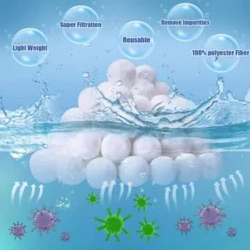 Show moreIntroducing the SETHVILL 3.1 lbs Pool Filter Balls, the revolutionary solution that transforms your swimming pool maintenance routine. Crafted from premium, eco-friendly polyester fiber, these filter balls are designed to provide a superior alternative to traditional pool filter sand. Not only are they remarkably lightweight, making them easy to handle, they also boast an exceptional filtering efficiency that rivals conventional methods. With a filtration capability that can capture impurities as small as 5-3 microns, you can enjoy a sparkling clean pool with less hassle than ever before.