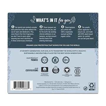 Seventh Generation Regular Absorbency organic cotton tampons made with Certified Organic Cotton