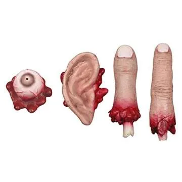 Show moreUnleash your inner horror enthusiast with our Severed Finger, Ear, Eyeball & Thumb set! This gruesome collection features four separate body parts that are sure to send shivers down spines during your Halloween festivities. Made from flexible, durable latex, these realistic props are not only lifelike but also lightweight, making them the perfect creepy additions to any costume or decor. Measuring approximately 4" in length, each piece is vividly detailed to ensure you achieve the ultimate eerie atmosphere at your next scare-tastic event.