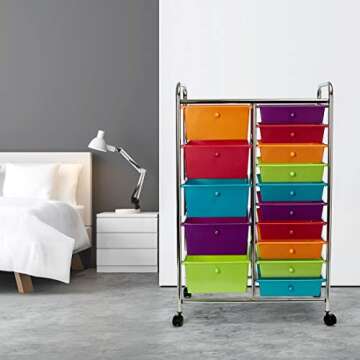 Seville Classics 15-Drawer Multipurpose Mobile Rolling Utility Storage Organizer Cart, Multicolor (Pearl)