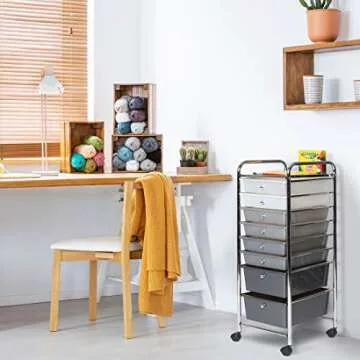 Seville Classics 8-Drawer Multipurpose Mobile Rolling Utility Storage Bin Organizer Cart, Gradient Gray