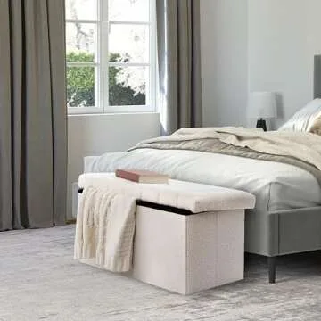 Seville Classics Cushioned Fabric Ottoman Hidden Storage Chest Footrest Chair, Padded Seat for Bedroom, Dorm, Loft, Living Room, Entryway, Hallway, White Boucle, 30" Bench
