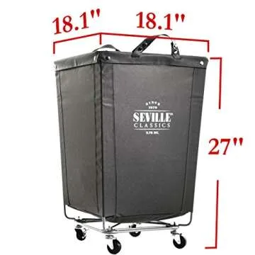 Seville Classics Large Commercial Heavy Duty Rolling Steel Frame Laundry Hamper Canvas Cart Bin w/Wheels for Hotel, Home, Closet, Bedroom (Patented), 18.1" D x 18.1" W, Gray