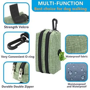 SEVVIS Dog Poop Bag Holder Leash Attachment - Poop Bag Dispenser for Leash - Dog Bag Holder for Leash with 2 Zipper, Pet Waste Bag Dispenser Fabric, Dog Bag Dispenser for Dogs, 1 Free Roll, Green