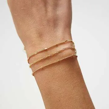 Show more Discover the exquisite charm of the Sewyer Gold Dainty Bracelet Set, a stunning collection designed for women who appreciate the beauty of simplicity and elegance. Crafted with care, each bracelet in this set features a stunning gold plating over durable brass, ensuring that these pieces are not only stylish but also long-lasting. With a focus on comfort, you can enjoy the radiant glow of the 14K gold filled material without worrying about rusting or skin irritations. Whether worn separately or stacked, these bracelets bring a touch of sophistication to your everyday attire.