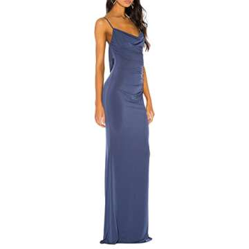 Sexy Ruched Backless One Shoulder Maxi Dress for Women Solid Color Sleeveless Halter Bodycon Party Club Dresses