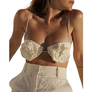Sexy Tank Top for Women 3D Floral Tassels Ruffle Crop Top Y2K Slim Fitted Sleeveless Shirt Tee(Q-Apricot Cami Top,S)