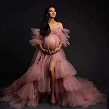Sexy Tulle Maternity Dresses for Photoshoot Old Hoollywood Robes for Women Champagne Bridal Nightgown Fluffy Bridal Robe