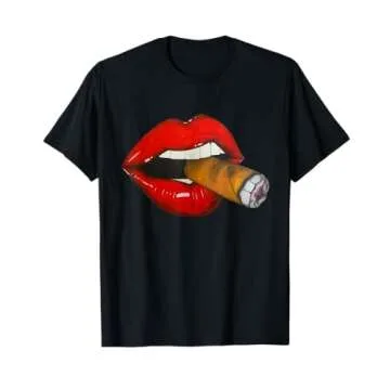 Sexy Women Smoking Cuban Cigar Red Lips Smoking T-Shirt