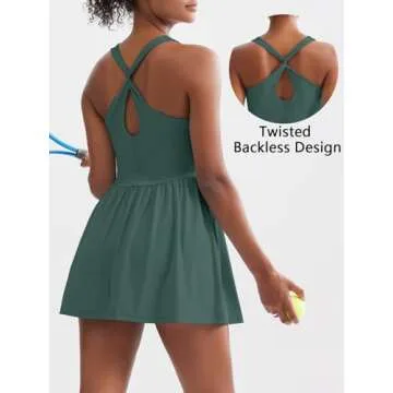 Sexyasasii Women's Summer Athletic Tennis Dress with Built in Shorts and Bra Square Neck Workout Exercise Active Golf Dresses Light Green