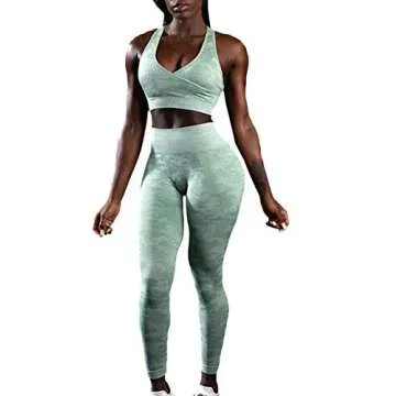 Sexyshine Women's 2 PCS Sexy Racerback Bra and Legging Tights Active Workout Sportswear Solid Yoga Set